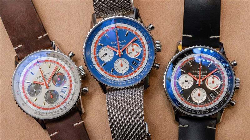 更具體地說,看看每一款“民用航空膠囊系列”手表,百年靈航空計時 B01 計時碼表 43 PAN-AM 版憑借其藍色和紅色表盤在價格上處于領先地位,因為它配備了匹配的鋼網金屬表鏈。然后我們有 Navitimer B01 計時碼表 43 瑞士航空版,帶有黑色、白色和紅色表盤(我最喜歡的一組)和一個簡單的黑色磨砂皮表帶。最后,百年靈航空計時 B01 計時碼表 43 TWA 版具有奶油色和紅色表盤,搭配棕色磨砂皮表帶。廣告訊息廣告信息結束
