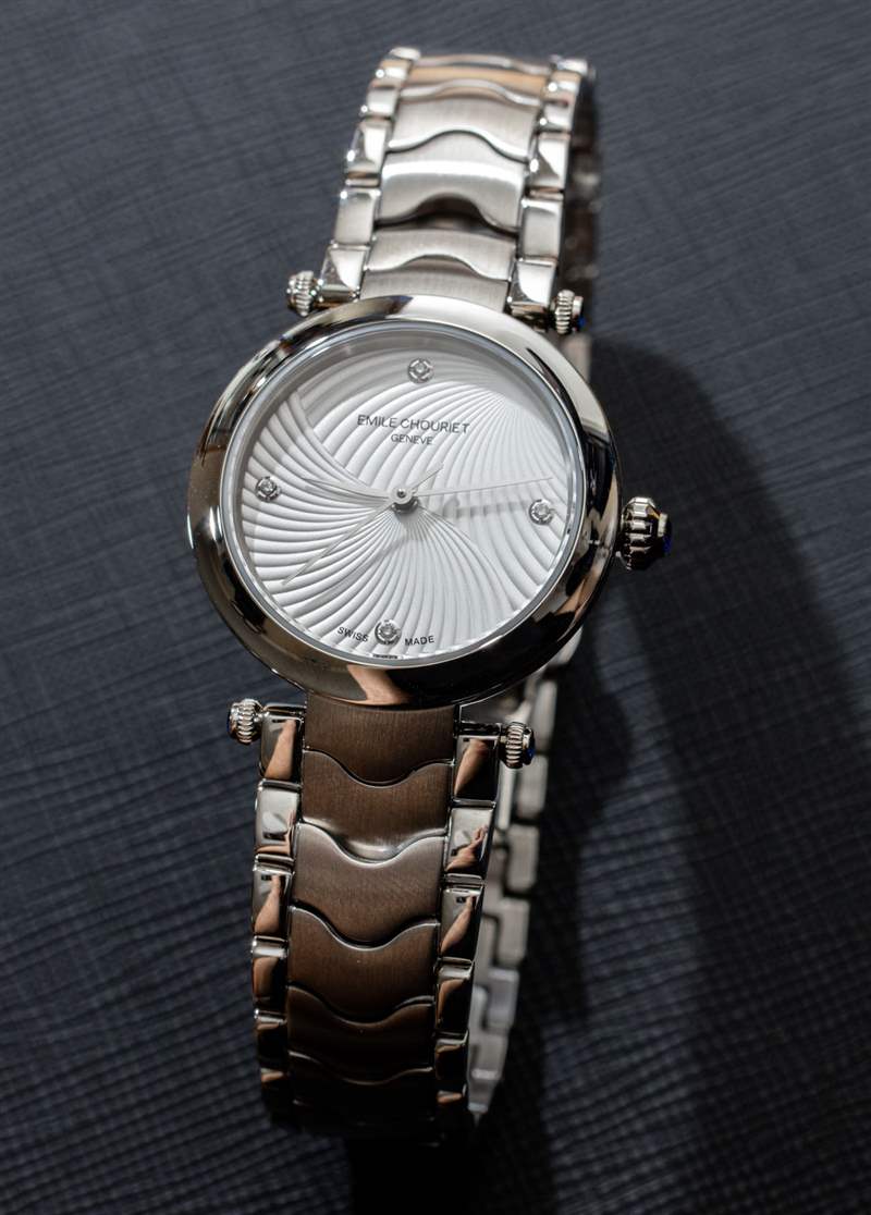 除了獨特的表盤設計(實際上,它們非常清晰——假設你可以不用所有的時標),Fair Lady 手表的原始元素包括“條形”表耳的特殊執行和彎曲手鏈鏈接的形狀。乍一看,手表本身并沒有大喊“Emile Chouriet”,但熟練的眼睛可以分辨出來。對于大多數佩戴者來說,更好的是,窈窕淑女的外觀類似于其他品牌的特定女性手表款式,但具有一些獨特的元素。這種針對主流奢侈級女表的特殊設計理念是明智的,并且往往會在這個價位上制造出成功的女表產品。