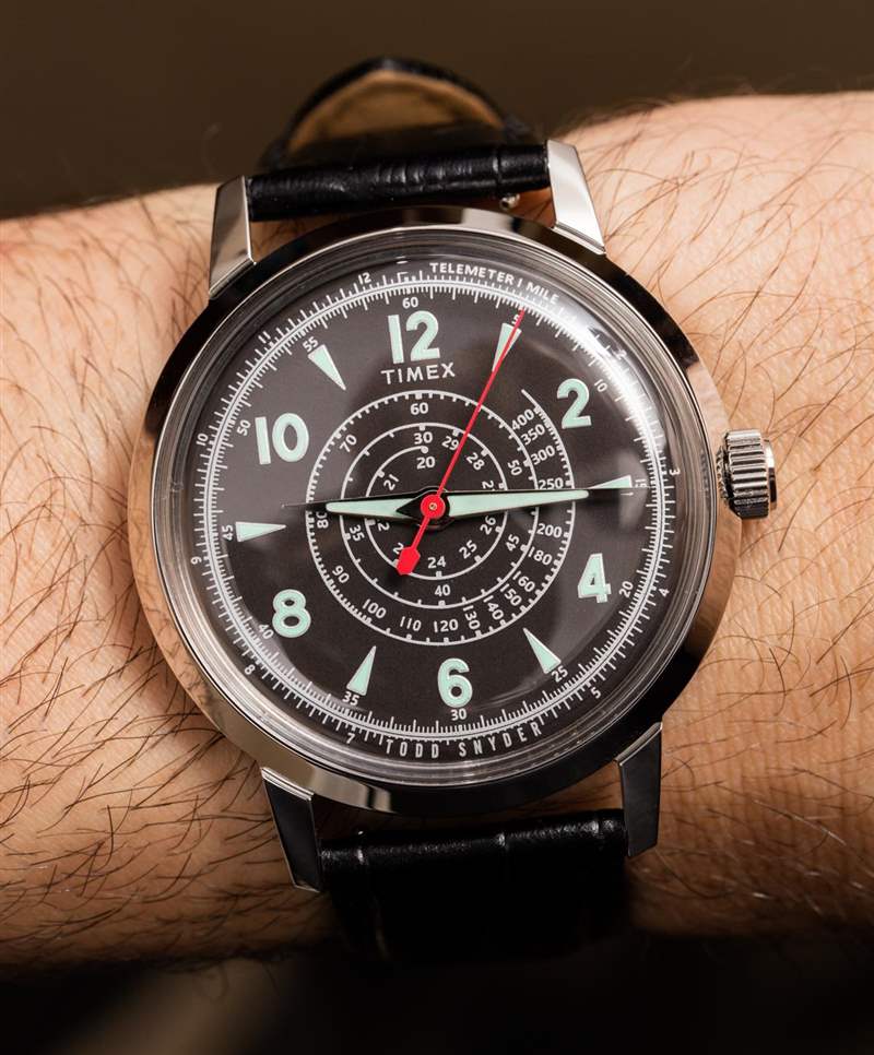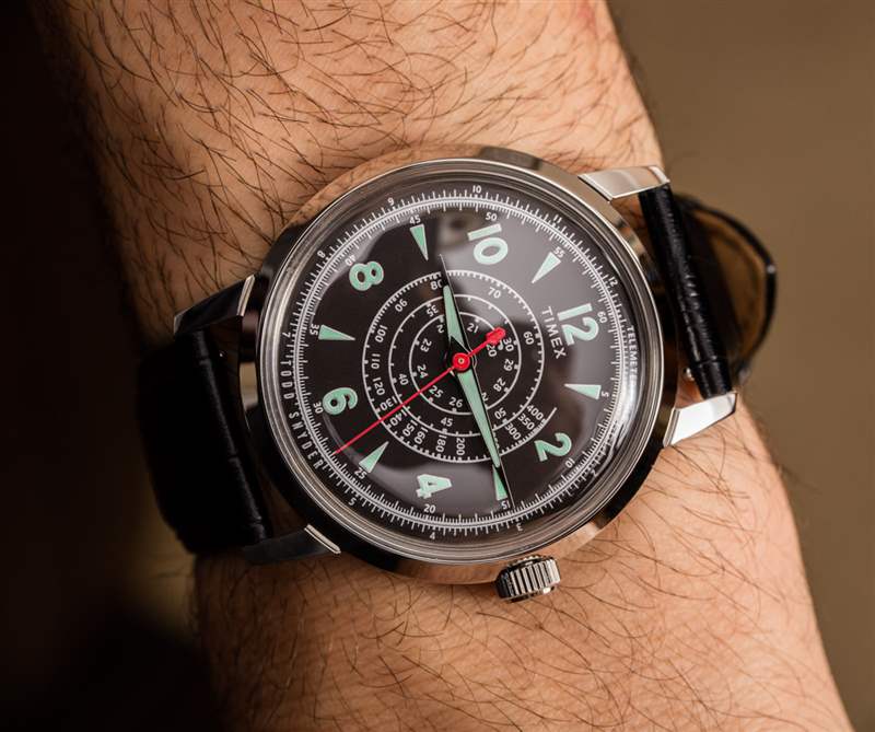 簡單的答案是,人們認(rèn)為這些刻度是表盤上有吸引力的補(bǔ)充,以使其看起來更有趣或更酷。Timex 實際上建議使用音階的“替代方案”,您可能會覺得這有點有趣(就像我一樣)。本質(zhì)上,他們建議等到主時間的秒針達(dá)到 60 分鐘標(biāo)記,然后在精確的秒數(shù)處拉出表冠。這將停止運(yùn)動,從而停止秒針的位置。當(dāng)您想要開始測速儀讀數(shù)(例如)時,您需要將表冠重新壓入 – 跟蹤物體行進(jìn)的預(yù)期距離 – 然后再次拉出表冠。這個過程不僅不是特別方便,而且很愚蠢,因為它會中斷時間的正常運(yùn)行。因此,每次您決定“使用”測速儀或遙測刻度時,您還需要重新調(diào)整時間。我認(rèn)為可以肯定地說,這是一款只看外觀的手表。