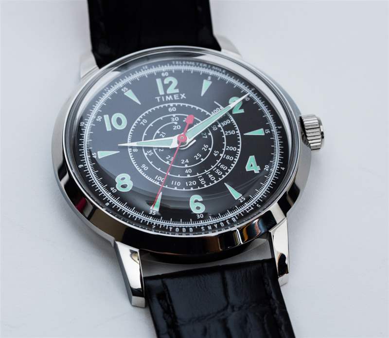 作為時尚單品,Timex + Todd Snyder Beekman 系列是一個很好的例子,它以非常合理的價格呈現(xiàn)出良好、熟悉的外觀。這不是每個人的外觀,但它確實遵循多年來流行的美學(xué),并在從名士 (Baume & Mercier) 到寶璣 (Breguet) 和加萊 (Gallet) 的手表中都有例子。作為一個工具手表愛好者,我需要努力忽略這樣一個事實,即手表是一個不完美的工具,因為測速儀和遙測刻度的“古怪”功能。我確實為 Timex 至少嘗試提出一種功能性變通方案表示贊賞,這意味著他們都知道表盤應(yīng)該如何工作(在傳統(tǒng)意義上)并采取措施解決它。對于那些更傾向于鐘表的人來說,Timex + Todd Snyder Beekman 是一種非常有效且低成本的方式,可以在手腕上對這種復(fù)古賽車手表外觀進(jìn)行采樣 – 讓愛好者可以確定他們是否喜歡這種風(fēng)格以支付類似的費(fèi)用,但具有實際的計時復(fù)雜功能. 附在手表上的是黑色或棕色鱷魚紋皮革表帶。我的選擇是本評論中看到的黑色表盤模型。