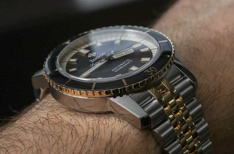 Zodiac參考 ZO9271 是現代 Super Sea Wolf Compression 手表的第一款雙色款式版本——我認為它的外觀非常出色。應該仔細研究這一點的人是那些想要一款制作精良、復古風格、配備優質機芯、價格實惠的潛水表,但又具有時尚感的人。這種時尚的轉折是鋼和 18k 黃金的美學外觀。