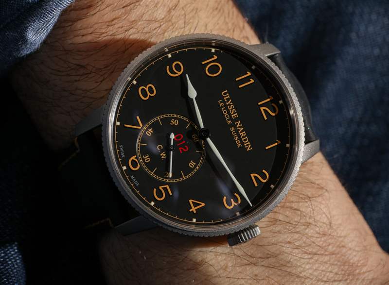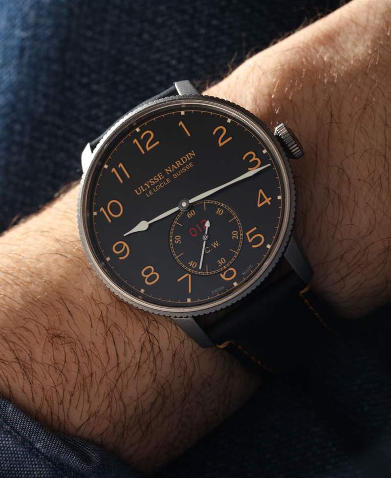 這些限量版腕表的意義不僅在于打造一款符合視覺主題的腕表,還在于強調實??際航海計時器需要非常準確的事實。手表表盤上的“CW”首字母代表“Chronometer Watch”,表殼內部是內部制造且性能良好的Ulysse Nardin機芯UN-118。這款 4Hz 自動機芯擁有 Diamonsil 擒縱機構(金剛石涂層硅,增加了硅的耐用性)和卓越性能的聲譽,實際上被剝離了一點,用于海軍陸戰隊 Torpilleur,只有時間包括輔助秒盤. 我的意思是,該機芯還提供動力儲存指示器和日期復雜功能,作為美學練習而被排除在表盤之外。