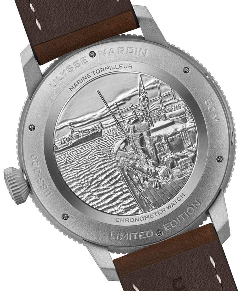 并非所有航海天文鐘都用于軍事用途,但有些是。受 20 世紀初至中期軍用飛機上使用的實際時鐘和鐘表的啟發,Marine Torpileur Military 將自己視為二戰期間乘坐法國魚雷艇(又名“torpileur”)的人的合適腕表伴侶。高對比度清晰的表盤、噴砂精鋼表殼和更大的尺寸都體現了這一主題。Marine Torpilleur Military 腕表的背面避開了典型的藍寶石水晶窗底蓋,采用了包括一些 torpilleur 艦船在內的雕刻場景。我已經包含了一些實際的法國 torpilleur 驅逐艦的圖片,以突出手表如何與船只的視覺主題相匹配。