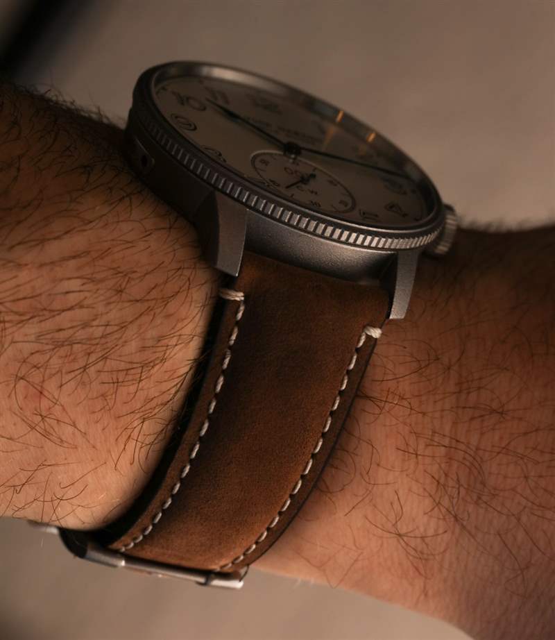 Ulysse Nardin 將每款腕表的限量版編號以紅色印在表盤上——這再次讓人聯想到軍用裝備的序列號。鑒于表盤上的數字是獨一無二的,每個人的手表版本看起來都會略有不同,這有點好。附在表殼上的是黑色或棕色皮革表帶,完美地完成了主題。在我看來,參考 1183-320LE/62(黑色)或 1183-320LE/60(蛋殼)都不是更好的模型,因為它們都具有設計優點和獨特的個性。我有點認為一個是白天模型,一個是夜間模型。