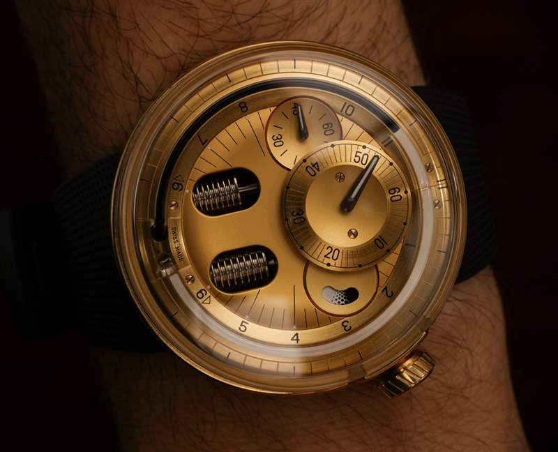 對于剛接觸 H0 表盤的人來說,了解如何讀取時間可能是一項挑戰(zhàn)。當我試圖知道如何將信息片段放在表盤上時,我會看到人們的臉上形成混亂的線條,從而獲得了輕微的虐待狂快感。它實際上只是調節(jié)器式顯示器的一種變體,它具有單獨的小時、分鐘和秒表盤。一個人只需要提前知道這一點。也許人們可以從這樣的時計中獲得的最大樂趣就是能夠完全忽略分鐘和秒。Botta 和 Meistersinger 等品牌幫助普及了僅顯示小時的“單手”表盤。顯然,H0 不是這樣的手表,但人們可以完全專注于管幾個小時,以至少或多或少地知道使用 12 小時格式的時間。即使這樣,