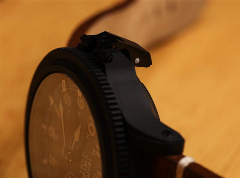 這是通過杠桿系統完成的,該系統將表圈連接到表冠所在的位置。位于表殼左側,您可以用手指將控制桿拉出到不同的表冠位置(上鏈、時間設置),然后旋轉手表的表圈而不是表冠。關于這一點,我最喜歡的部分是它讓閑坐在那里為機械表上弦的體驗更有趣——因為轉動表圈(從觸覺的角度來看)比轉動較小的表冠更令人滿意。然而,當手表戴在手腕上時,很難拉出杠桿系統。這意味著如果您想調整時間,您需要取下手表。