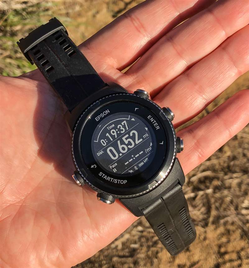 出于易讀性和電池壽命的主要原因,愛普生決定放棄多色高分辨率屏幕,轉(zhuǎn)而采用先進(jìn)的電子墨水顯示器,他們稱之為“EasyView Display”(一種電子紙顯示器)。該顯示器的缺點(diǎn)是它是單色的,并且(按設(shè)計(jì))不具有高刷新率。這意味著與 Apple Watch 之類的產(chǎn)品不同,您不會(huì)擁有具有明亮圖像和動(dòng)畫的高分辨率、彩色顯示屏。好處是屏幕的明暗部分之間的對(duì)比度非常高,以及出色的電源效率。愛普生希望 ProSense 367 成為功能強(qiáng)大且可靠的基于 GPS 的健身工具。為了以令人印象深刻的電池壽命實(shí)現(xiàn)這一目標(biāo),他們需要一個(gè)非常高效的屏幕。廣告訊息廣告信息結(jié)束
